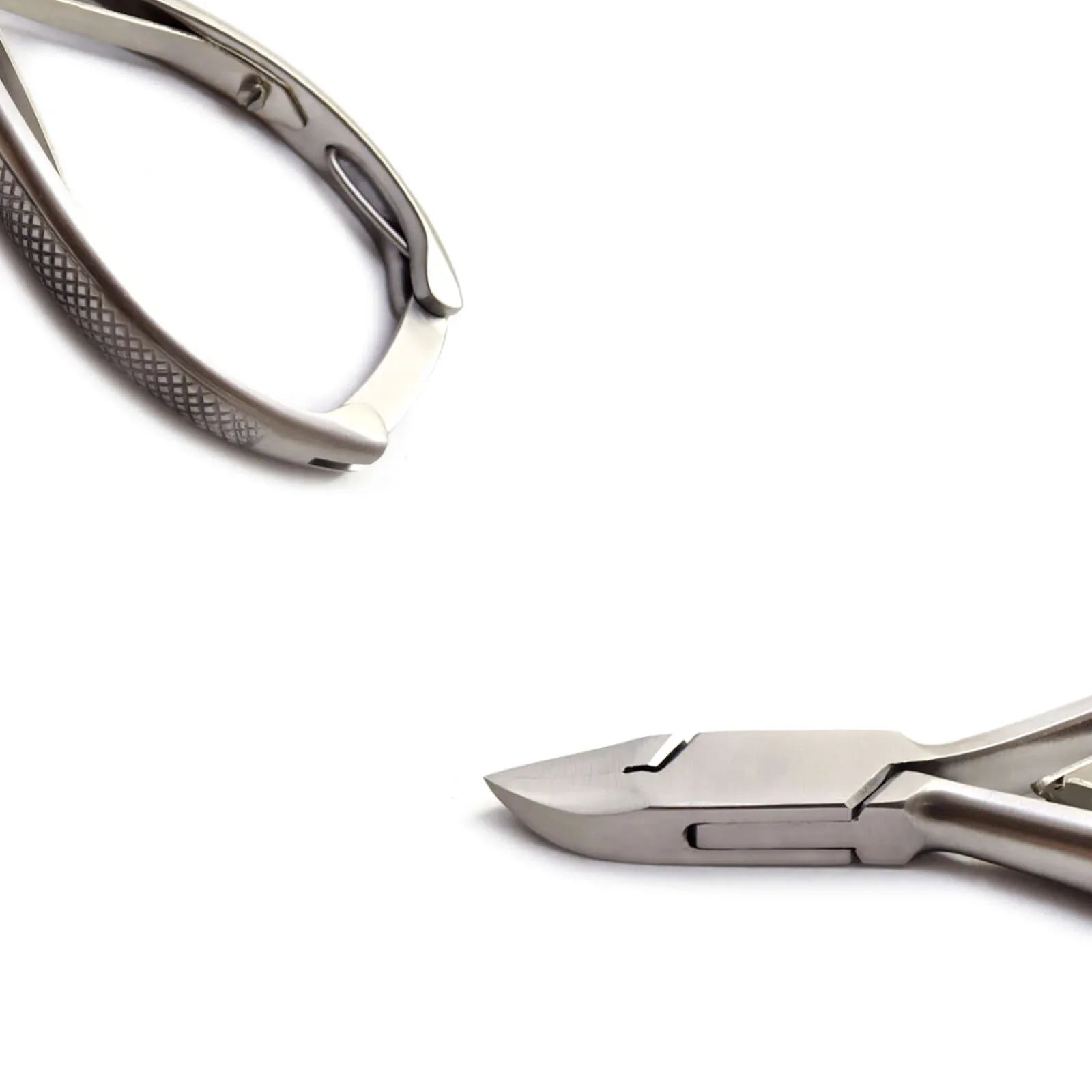 The Nail Side Cutter Pattern Handle Curved End 14cm from HYADES is a double-action surgical instrument designed for use in veterinary, general, and orthopedic surgeries and treatments. Its curved end is perfect for toe nail clippings, ingrown finger nails, and cutting through thick, hard nails. This versatile instrument is essential in any veterinary, manicure, pedicure, or podiatry kit.